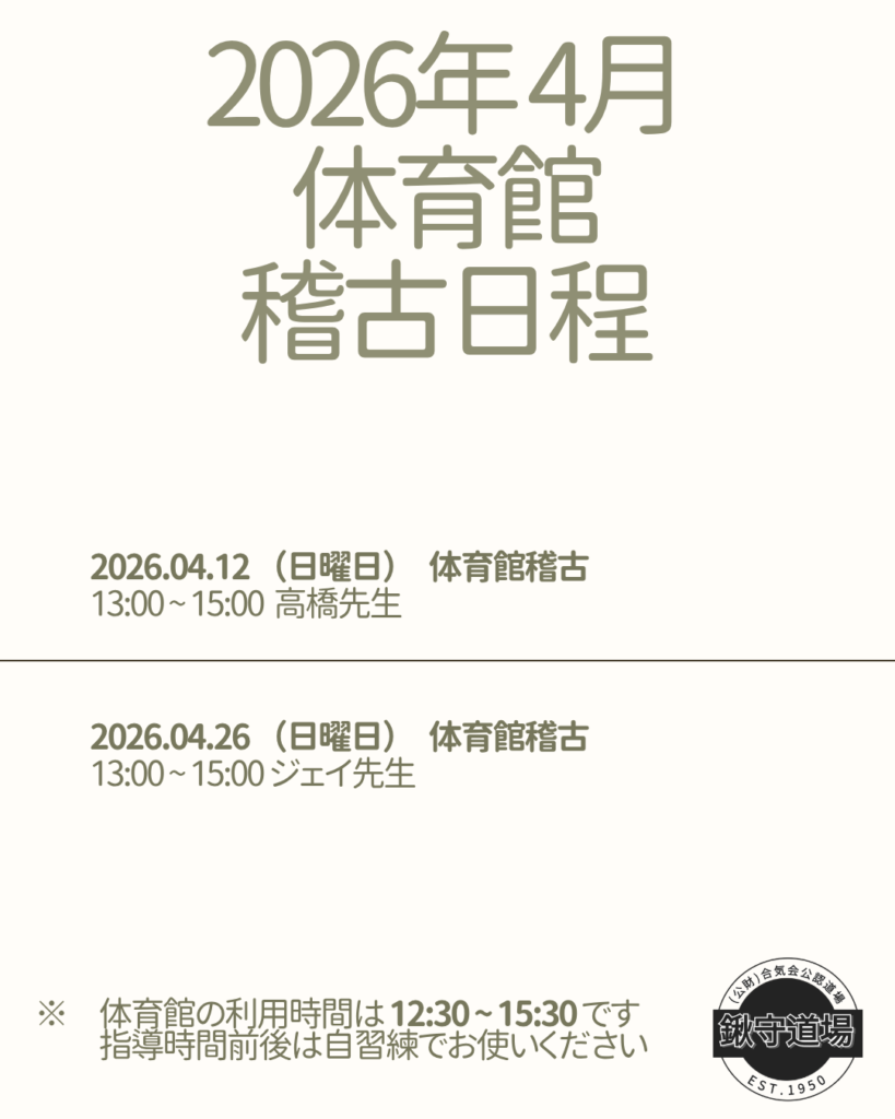 2026年4月より体育館の稽古時間が下記のとおり変更となります。